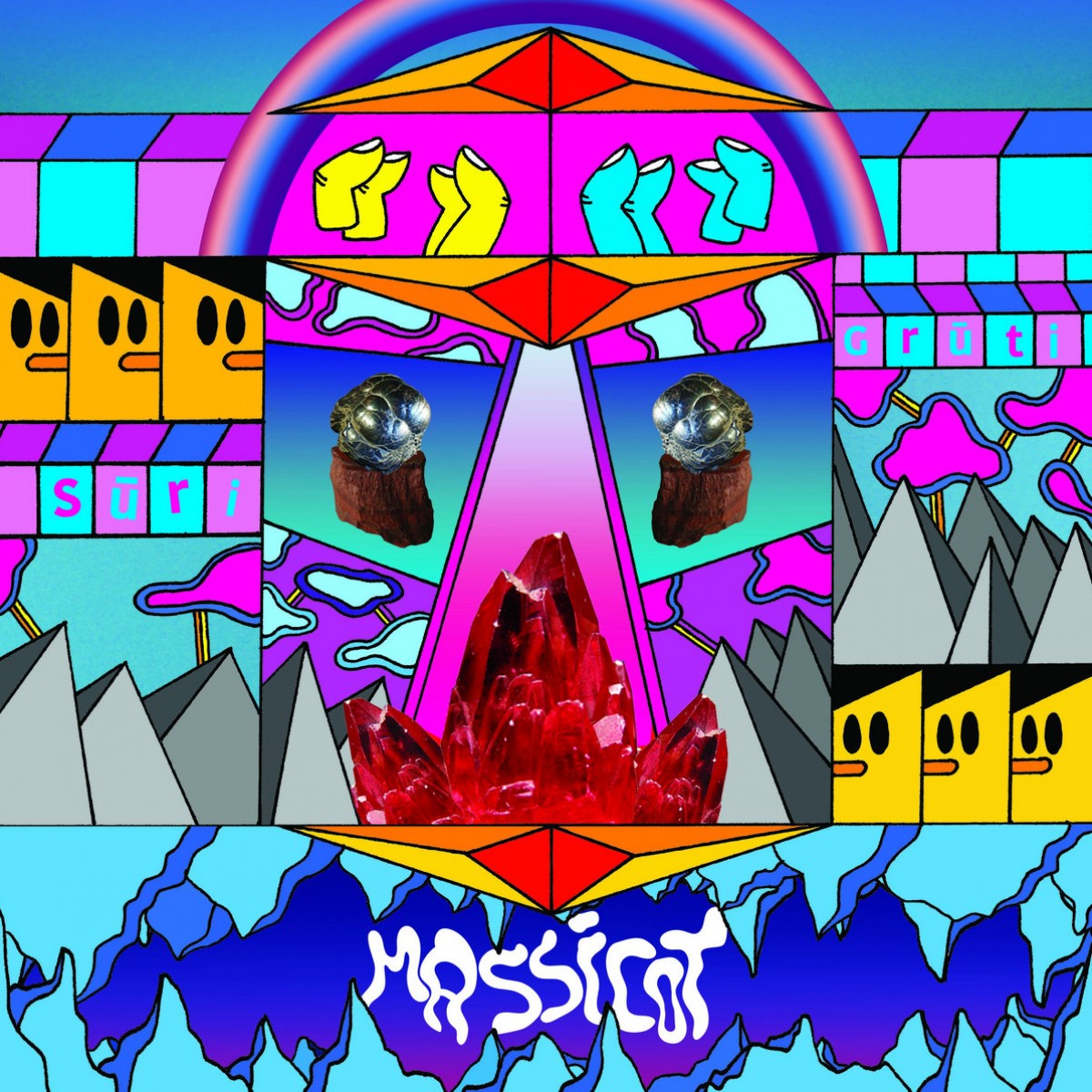 Massicot c’est une guitare rythmique obsessionnelle aux variations soniques, une baby-basse trafiquée, une batterie kraut entraînante farcie de percussions aux accents tropicaux, le tout survolé par des scansions vocales de poésie lettone, absurdités françaises, gags dadas, coupé en tranches de psychédélisme, avec la précision d’un massicot. Massicot oscille entre des moments franchement bruyants et énergiques et des phases hypnotiques de transes répétitives voir atmosphériques invitant à la danse.